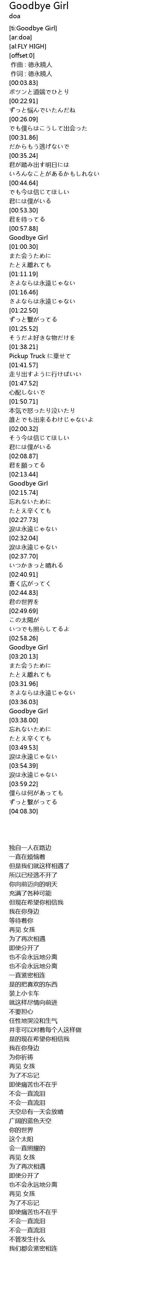| [03:18.46] | 再见 女孩 |