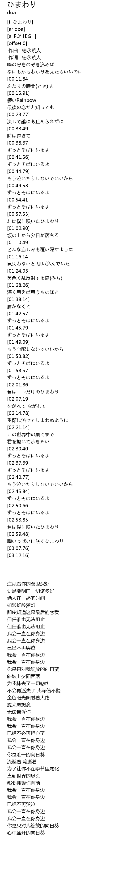 | [03:01.59] | 心中盛开的向日葵 |
