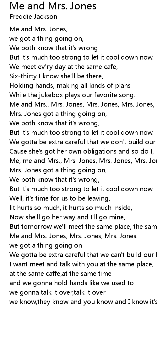 Me and Mrs., Mrs. Jones, Mrs. Jones, Mrs. Jones, |