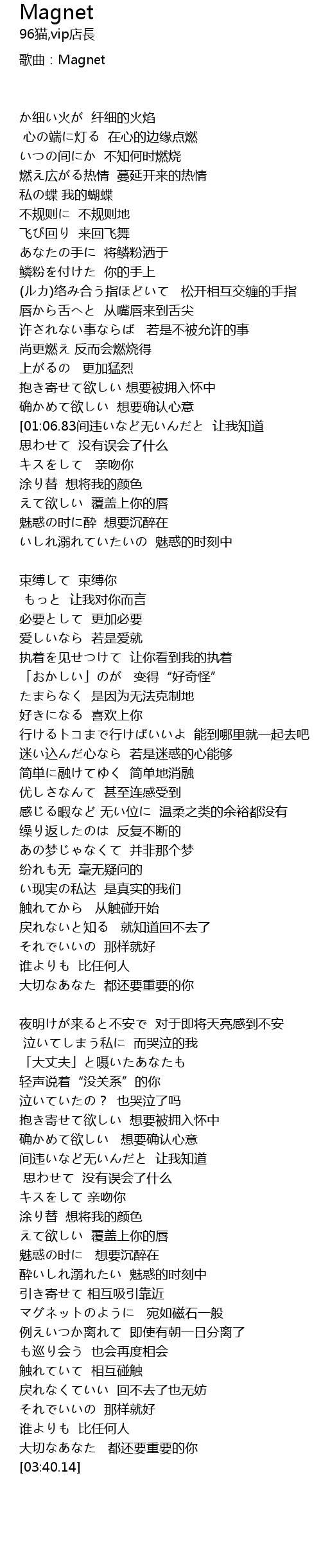 | [03:18.73] | マグネットのように 宛如磁石一般 |