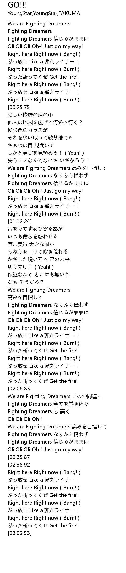 | [02:52.88] | ぶった斬ってくぜ Get the fire! |