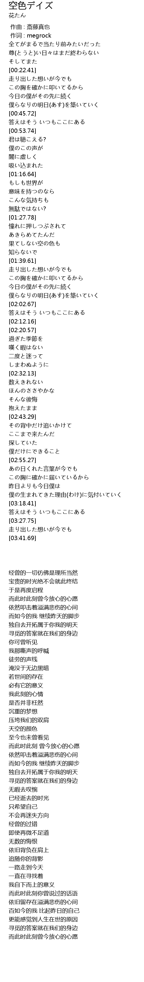 | [03:36.43] | 而此时此刻曾今放心的心愿 |