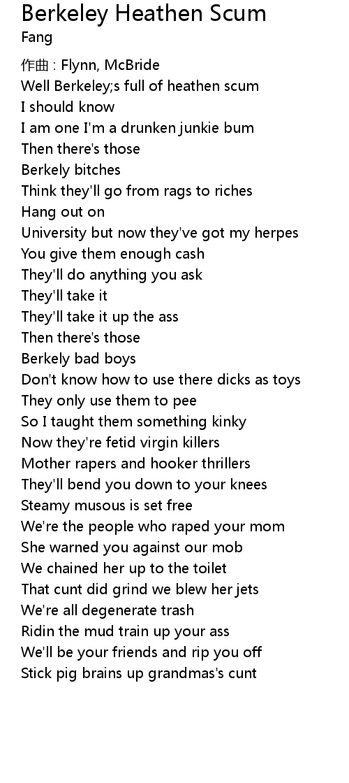 | 歌曲 | Berkeley Heathen Scum |