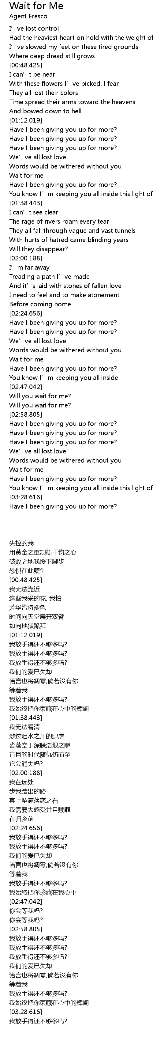 | [03:16.274] | 诺言也将凋零,倘若没有你 |