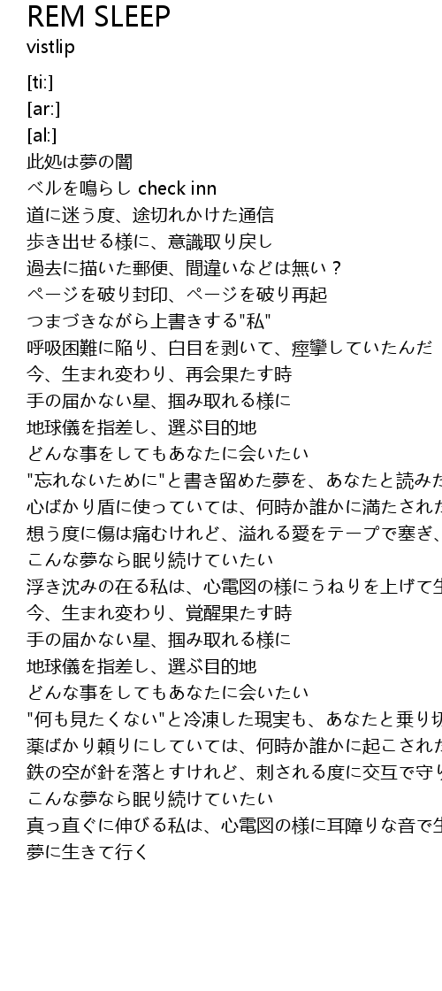 | [03:58.67] | こんな夢なら眠り続けていたい |
