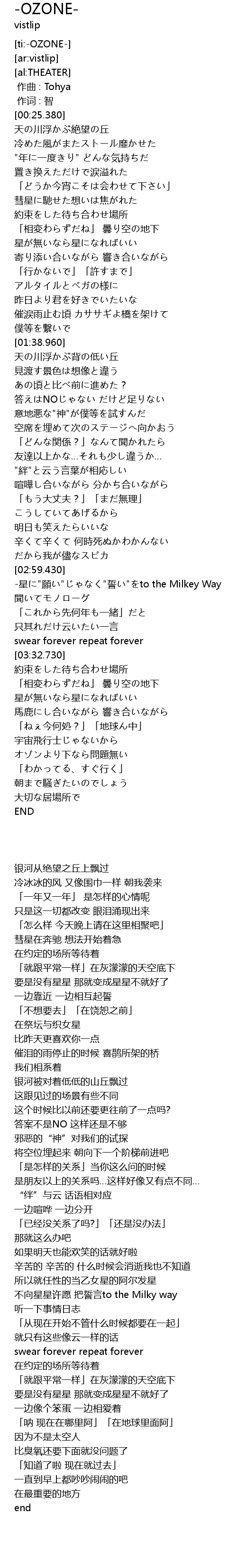 | [03:20.210] | -星に"願い"じゃなく"誓い"をto the Milkey Way |