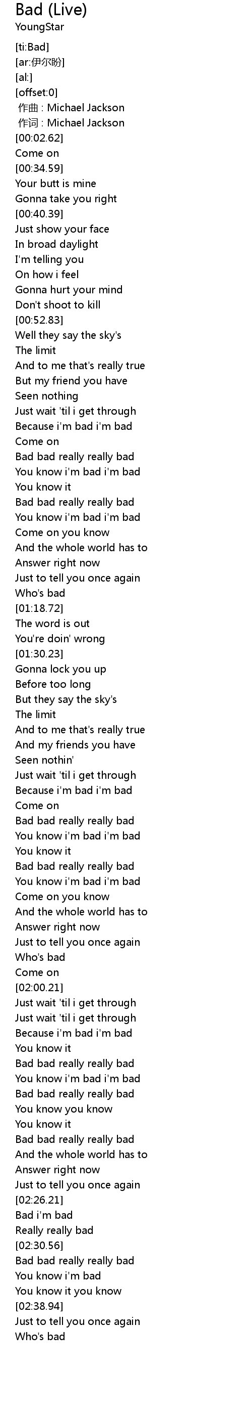 | [01:59.41] | Who' s bad |