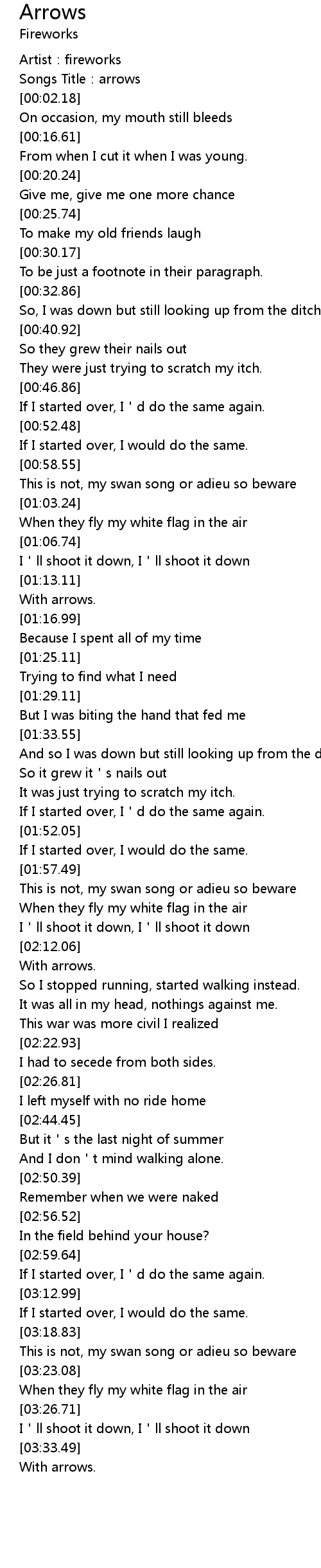 | [01:34.30] | And so I was down but still looking up from the ditch |
