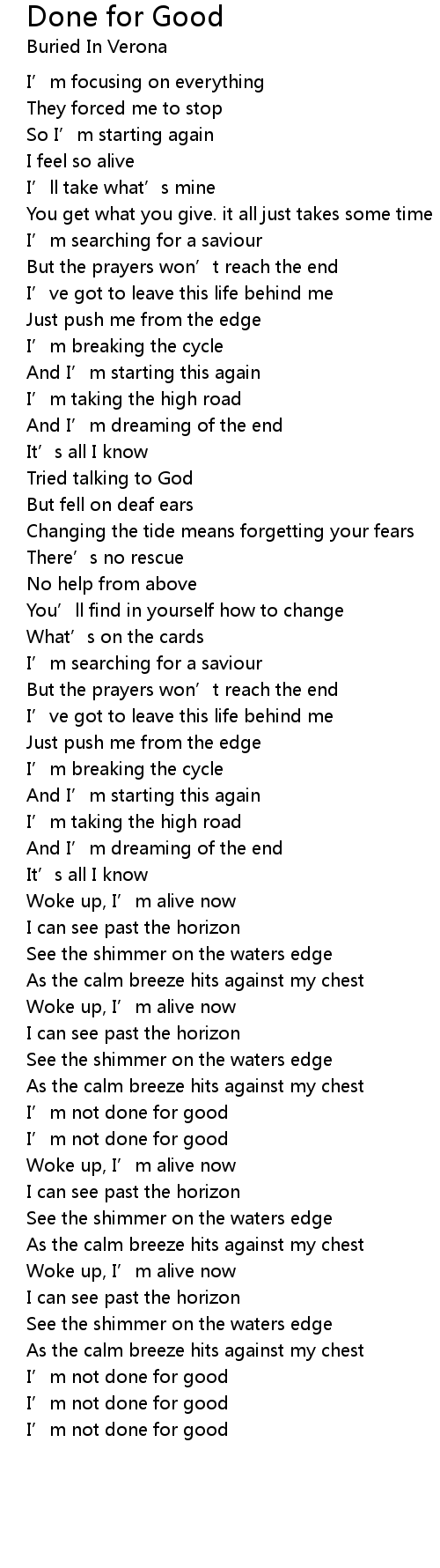 | 歌曲 | Done for Good |