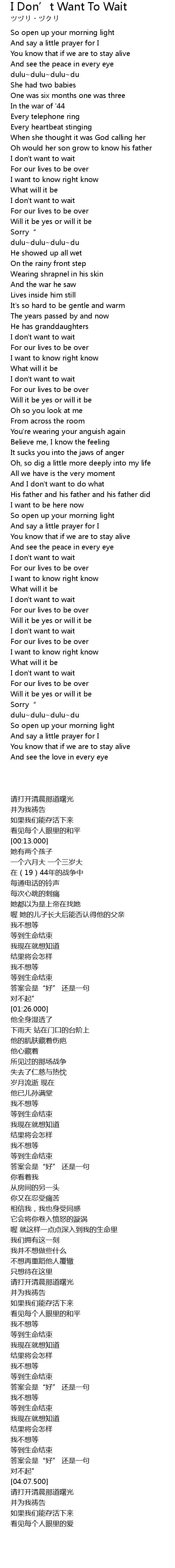 | [03:33.000] | I don' t want to wait |