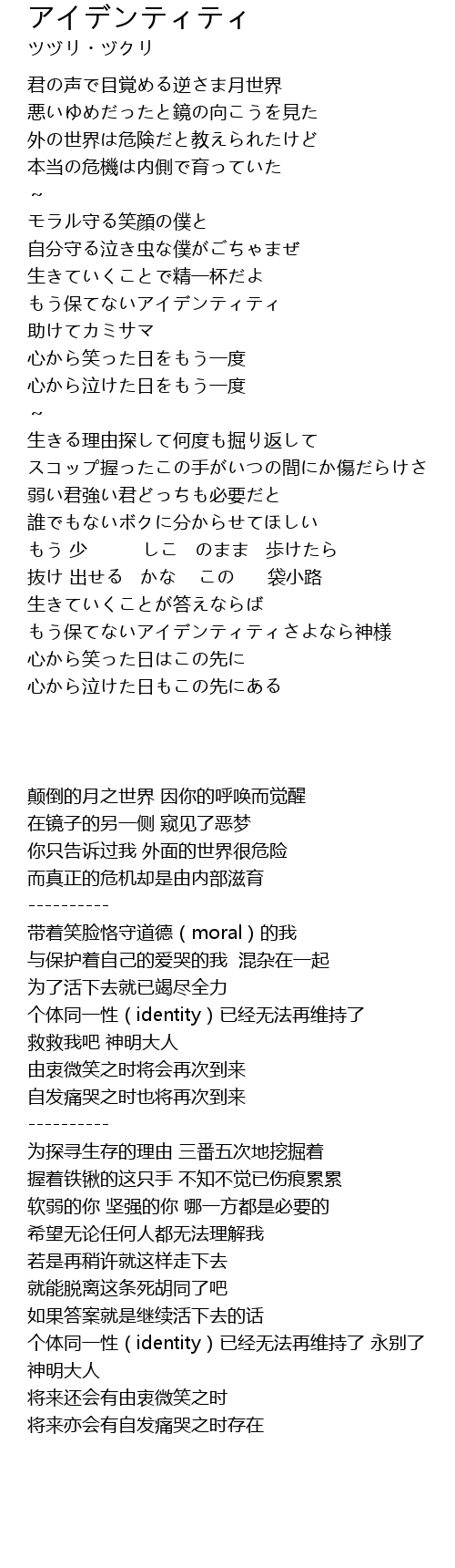 | [02:55.350] | もう保てないアイデンティティさよなら神様 |
