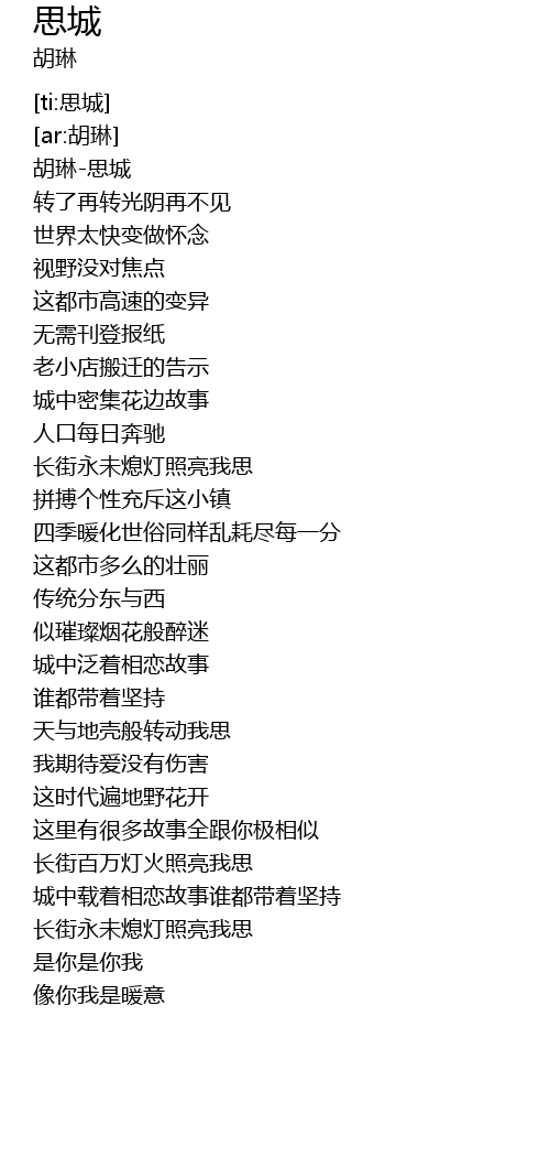 | [02:58.139] | 长街百万灯火照亮我思 |