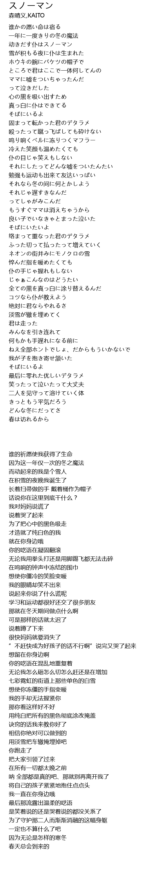 | [00:34.89] | 在积雪的夜晚我诞生了 |
