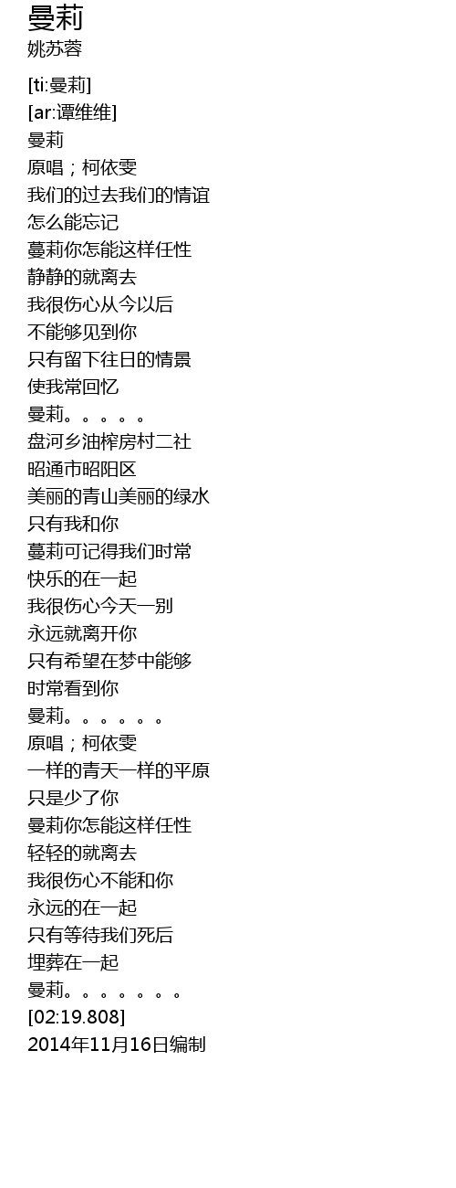 | [00:23.944] | 蔓莉你怎能这样任性 |