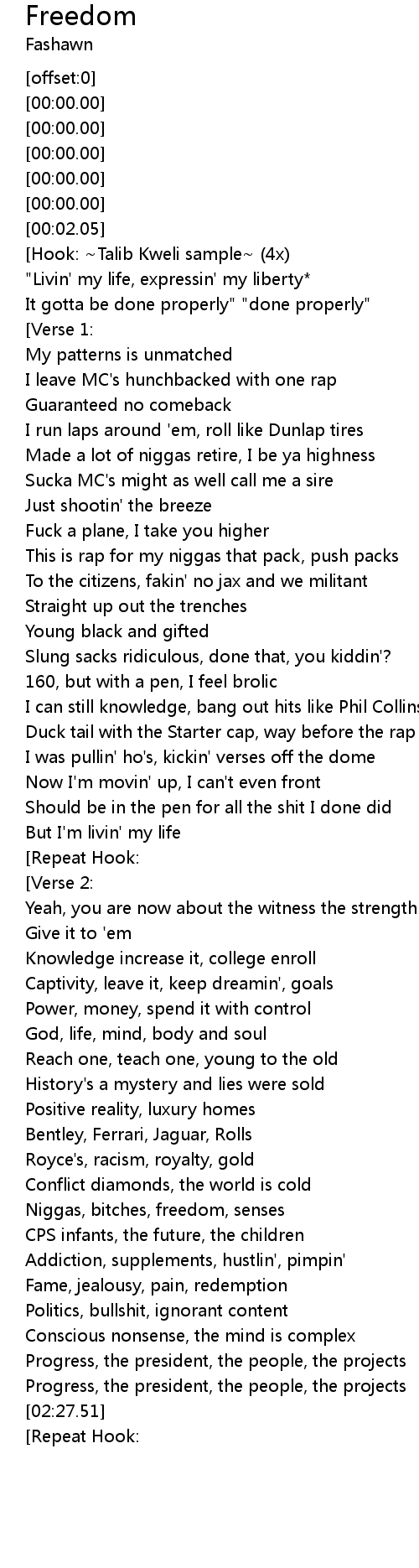 [02:06.60] Niggas, bitches, freedom, senses