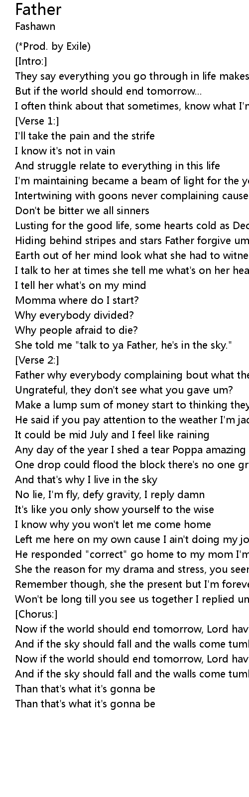 She told me "talk to ya Father, he's in the sky." |