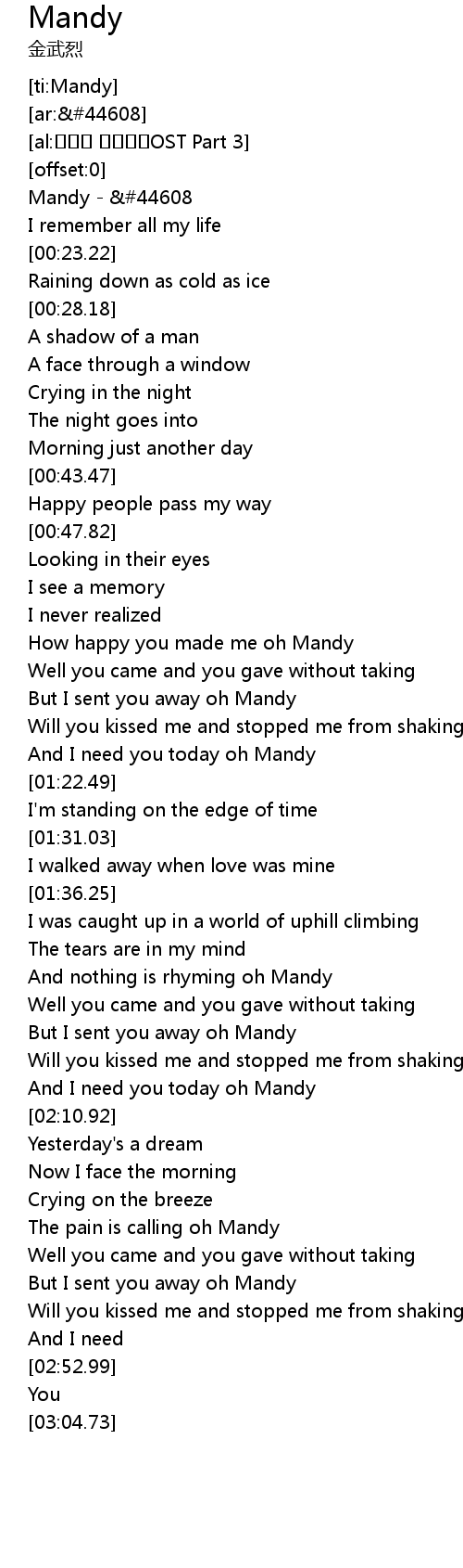 | [01:44.46] | And nothing is rhyming oh Mandy |