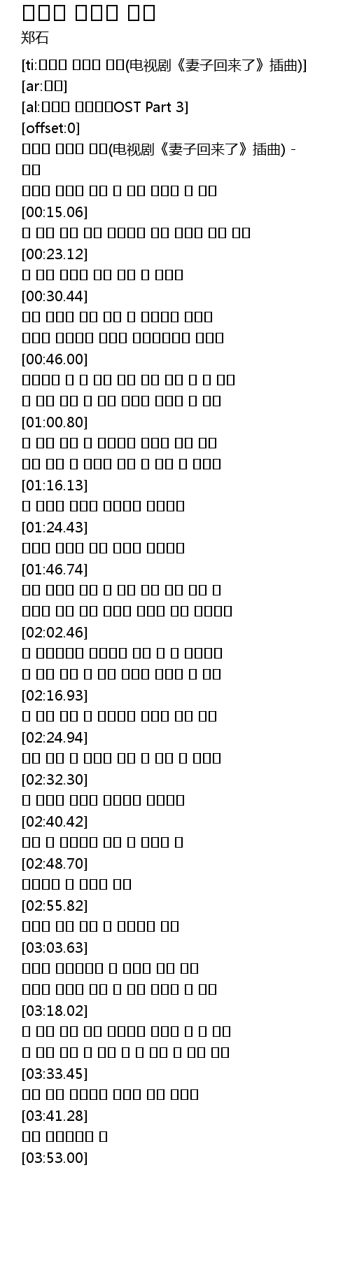 | [00:00.67] | 가슴이 시작한 사랑(电视剧《妻子回来了》插曲) - 정석 |