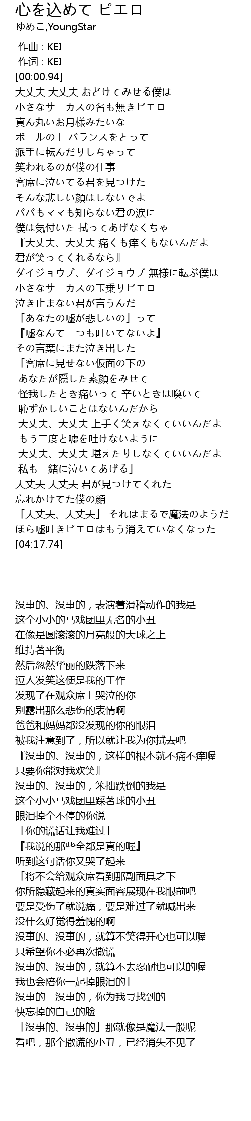 | [00:10.60] | 小さなサーカスの名も無きピエロ |