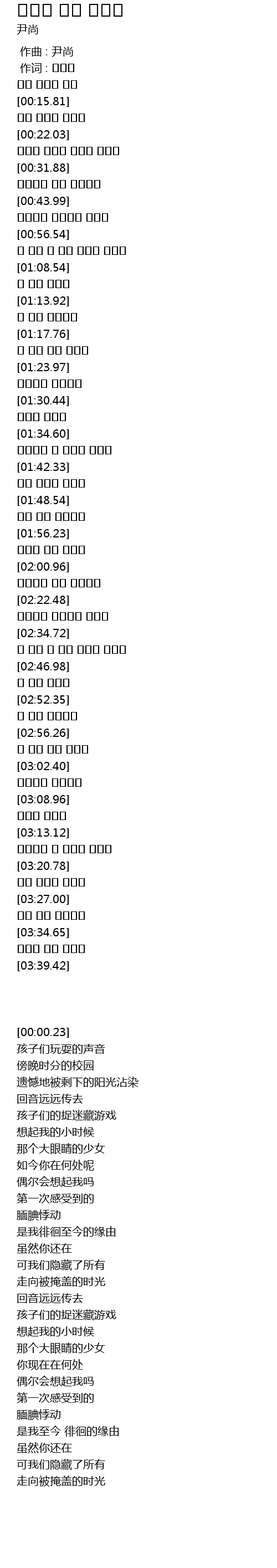 | [02:28.43] | 孩子们的捉迷藏游戏 |