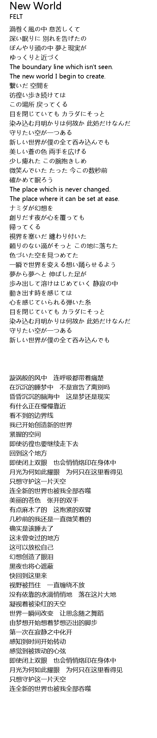 | [03:33.020] | 新しい世界が僕の全て呑み込んでも |