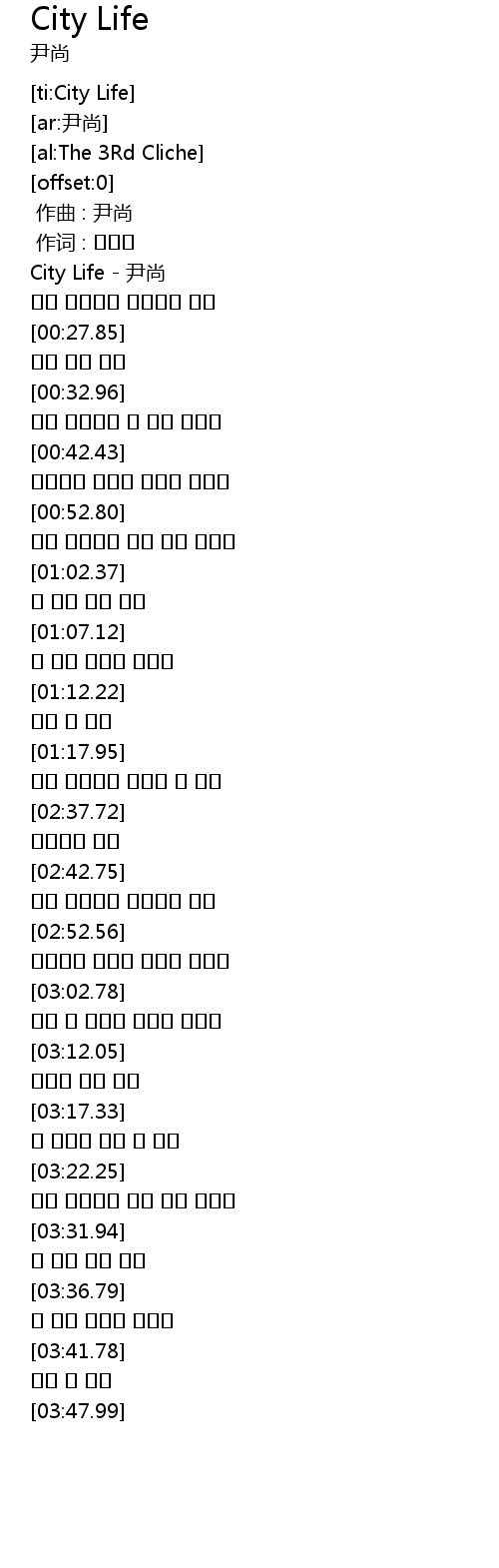 | [00:00.56] | City Life - 尹尚 |