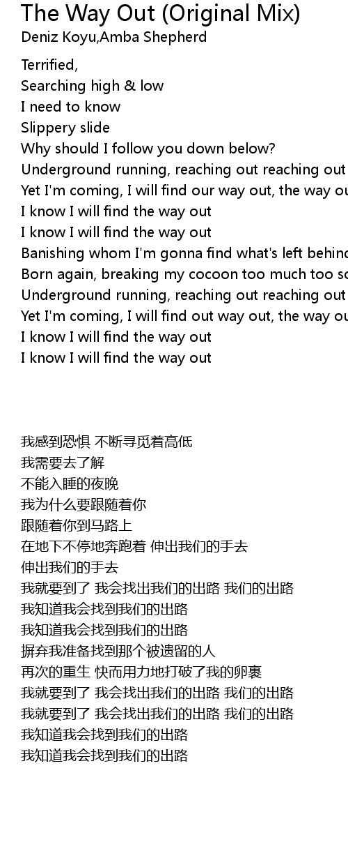 Yet I'm coming, I will find out way out, the way out |