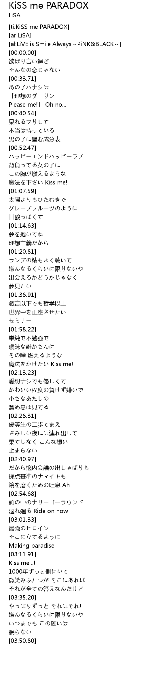 | [01:03.58] | 魔法を下さい Kiss me! |