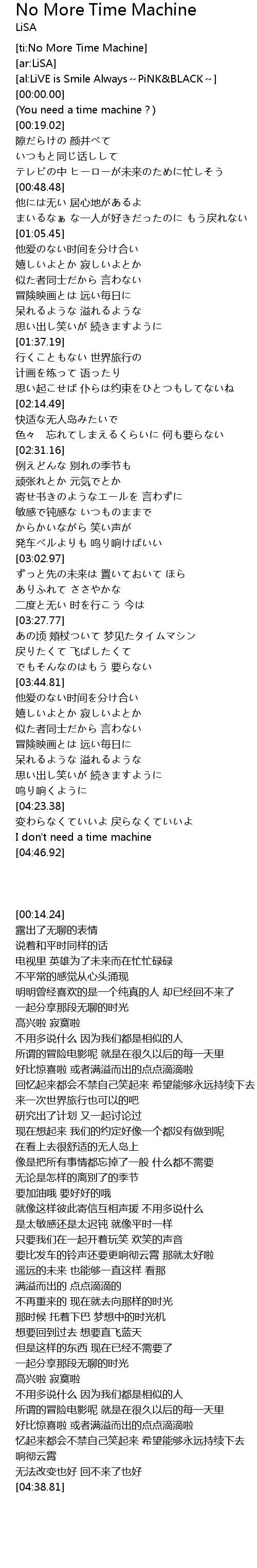 | [03:29.61] | あの顷 頬杖ついて 梦见たタイムマシン |