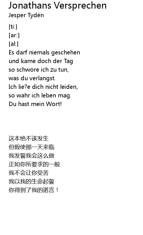 | 歌曲 | Jonathans Versprechen |