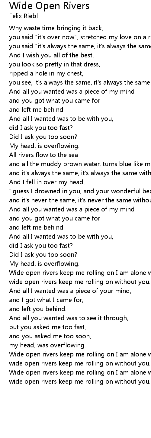 wide open rivers keep me rolling on without you. |