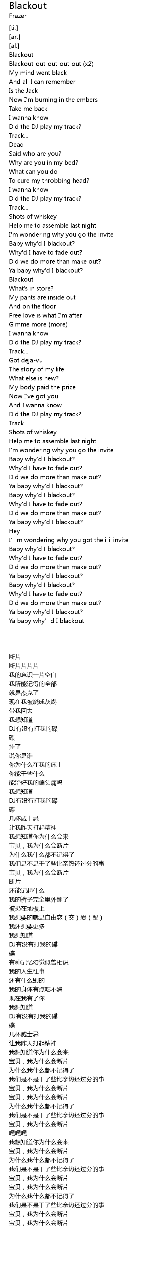 | [02:41.80] | Baby why'd I blackout? |