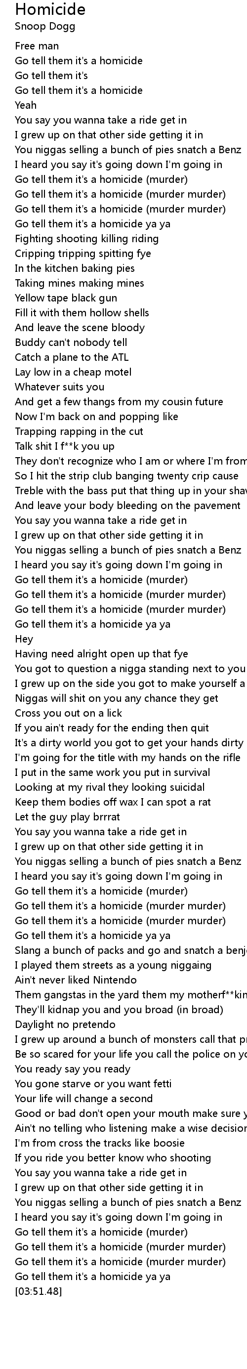 Go tell them it's a homicide (murder murder) |