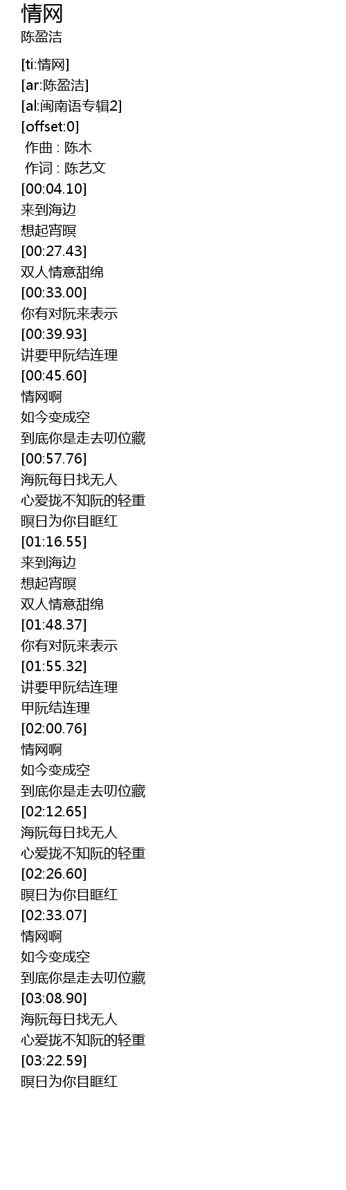 | [03:16.69] | 心爱拢不知阮的轻重 |