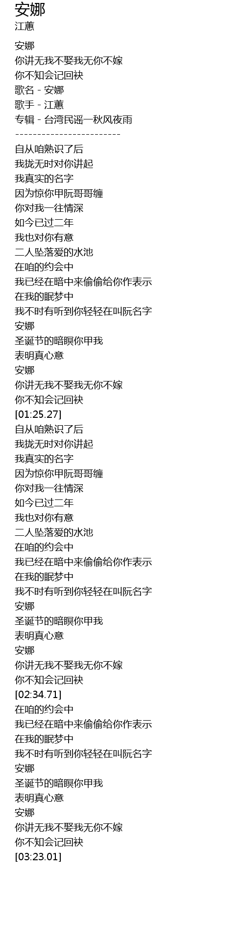 | [03:06.69] | 圣诞节的暗瞑你甲我 |