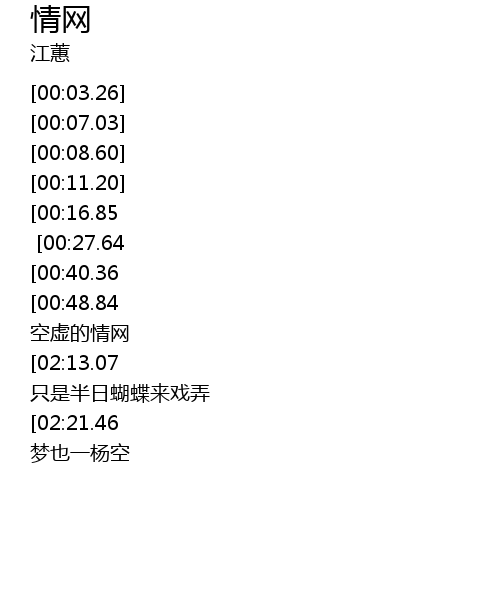 | [02:42.62][02:21.46][01:09.97] | 一张情网 一场情梦 网也无半项 梦也一杨空 |