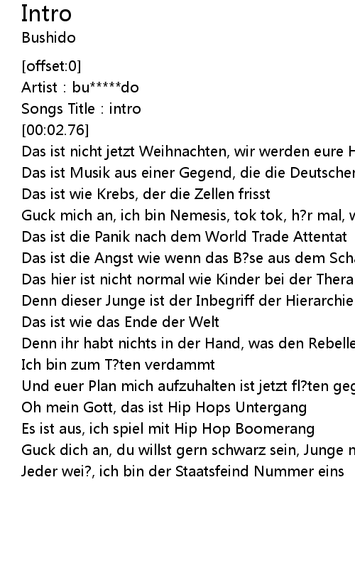 | [00:56.70] | Das ist nicht jetzt Weihnachten, wir werden eure H?user verbrennen |