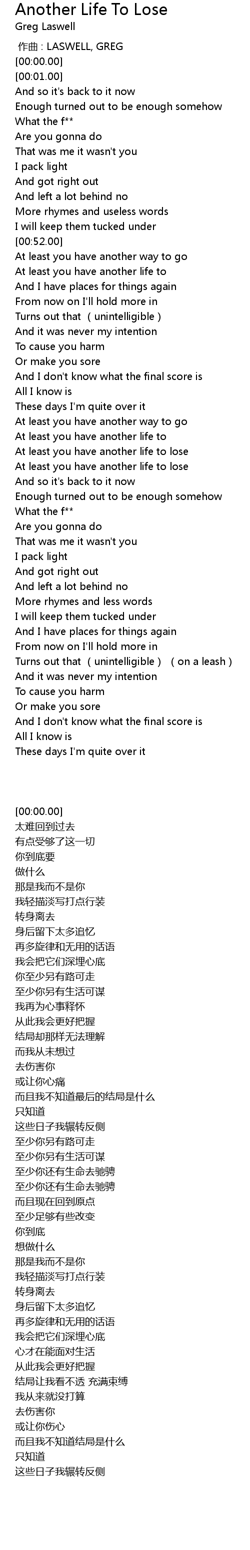 | [00:00.00] | zuo qu : LASWELL, GREG |