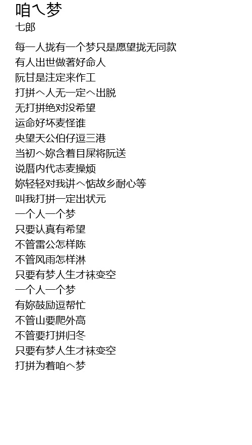 | 打拼为着咱へ梦 |