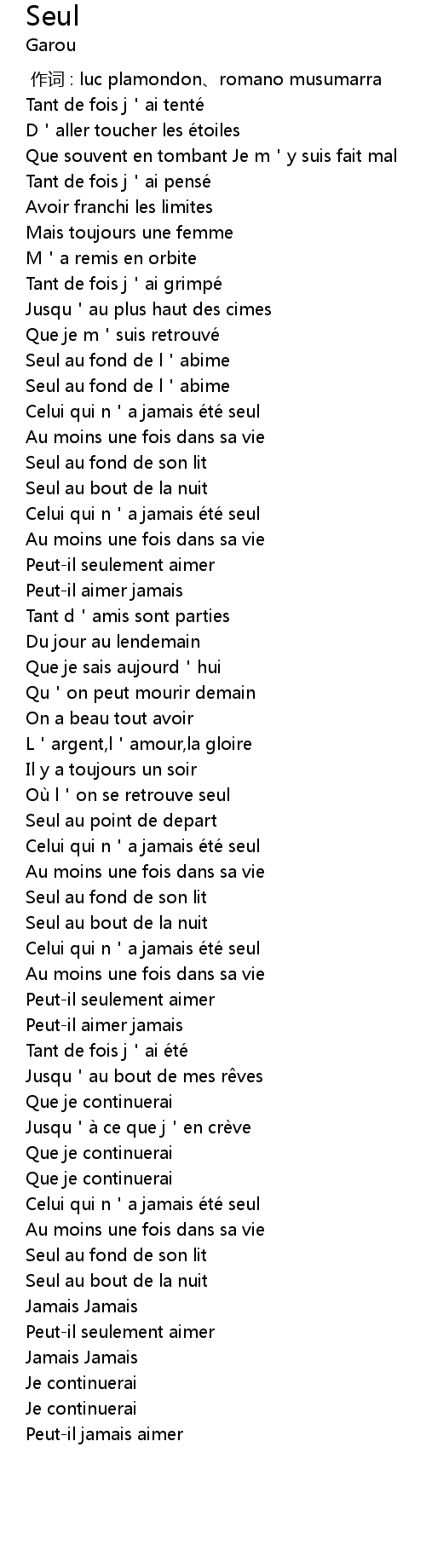 | [02:39.570] | Celui qui n a jamais e te seul |