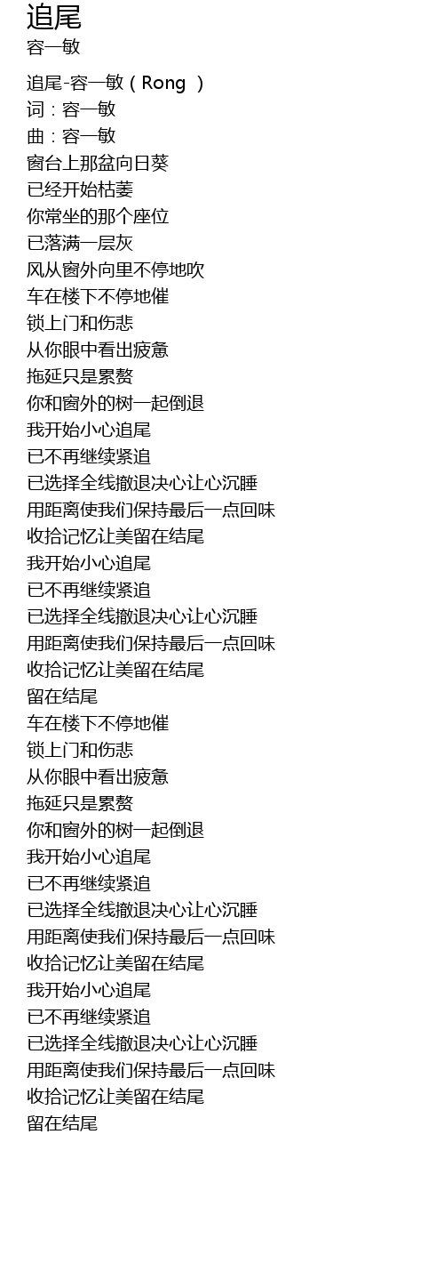 | [00:00.00] | 追尾-容一敏(Rong ) |