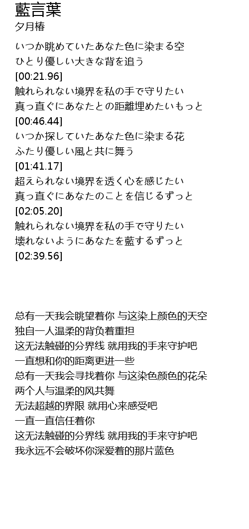 | [02:28.19] | 我永远不会破坏你深爱着的那片蓝色 |