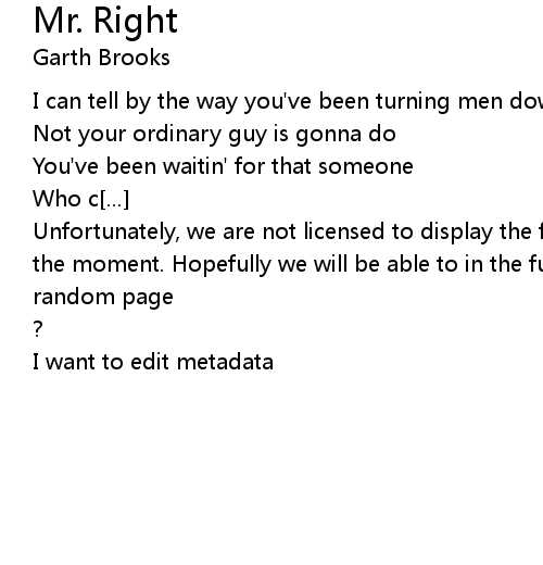 | Unfortunately, we are not licensed to display the full lyrics for this song at the moment. Hopefully we will be able to in the future. Until then, how about a | |