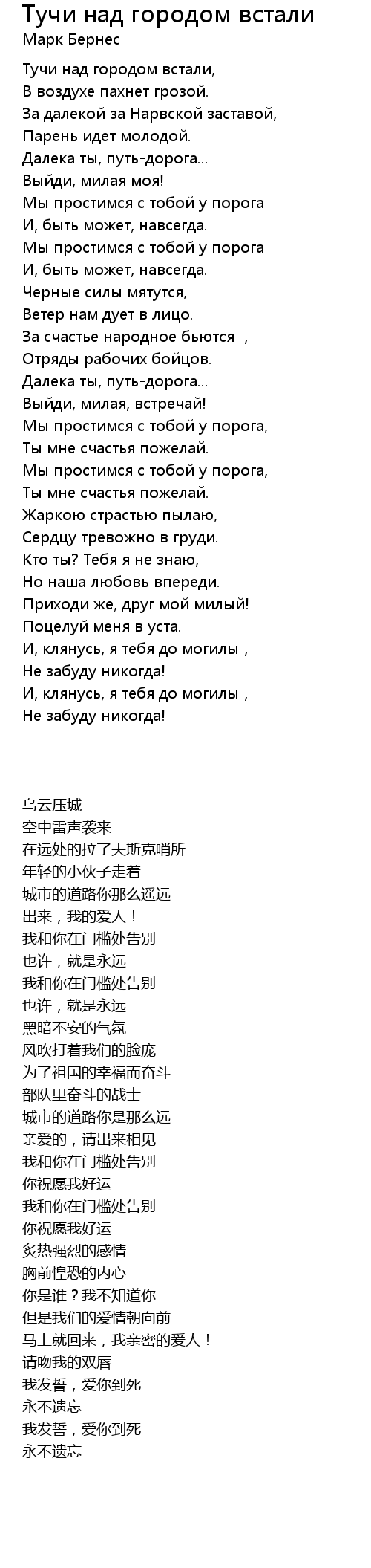 | 歌曲 | Тучи над городом встали |