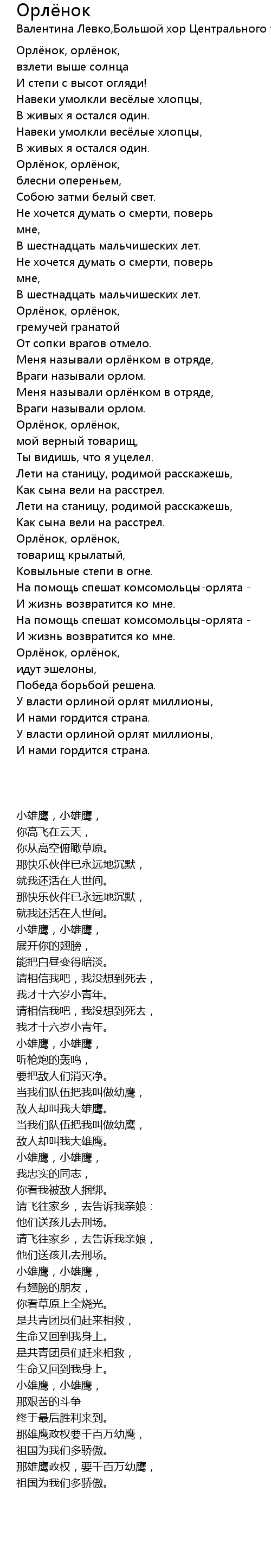 | 歌曲 | Орлёнок |