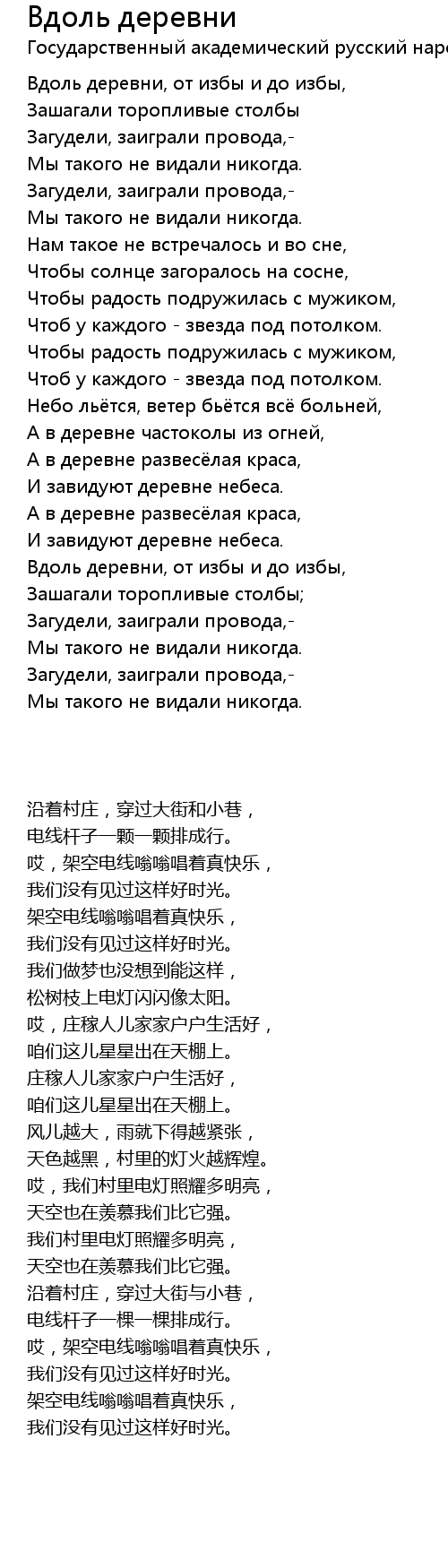| [01:34.500] | Вдоль деревни, от избы и до избы, |