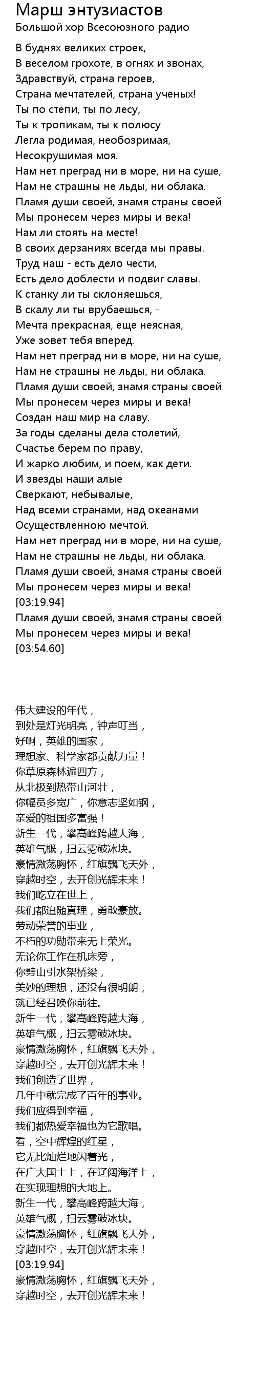 | 歌曲 | Марш энтузиастов |