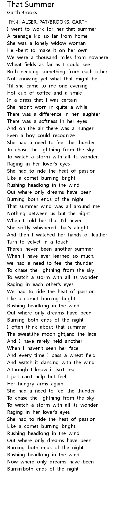 | [00:00.00] | 作词 : ALGER, PAT/BROOKS, GARTH |