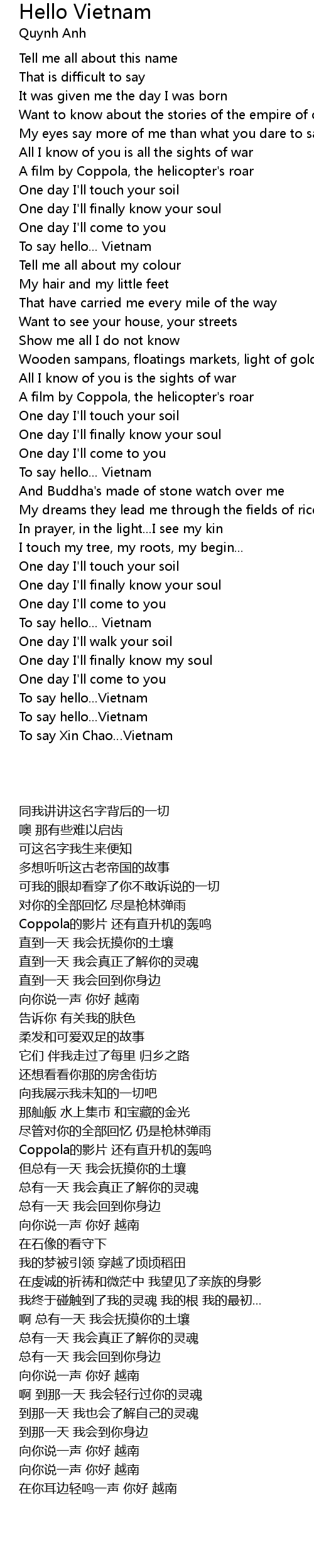 | [03:05] | 向你说一声 你好 越南 |