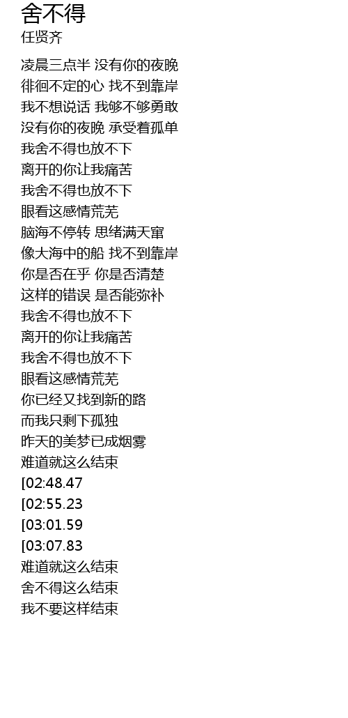 | [03:15.10][02:48.47] | 我舍不得也放不下 |